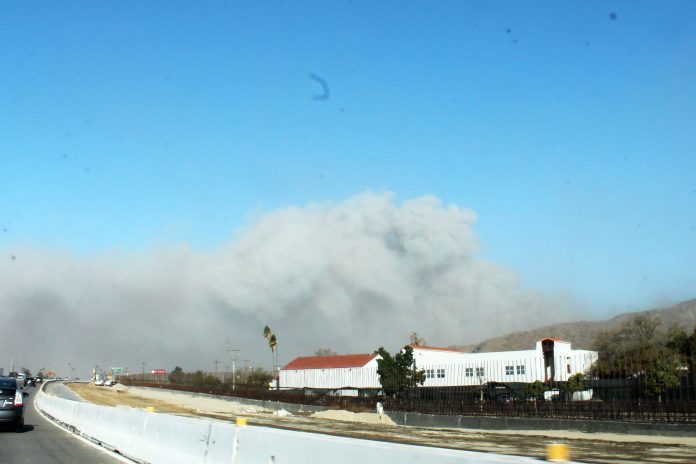 The fire started near a creek and is threatening homes along the 210 freeway. The winds also knocked down a tree that smashed through a car this morning at Valley Circle near Lazy J. Ranch Park. The driver’s condition is unknown.