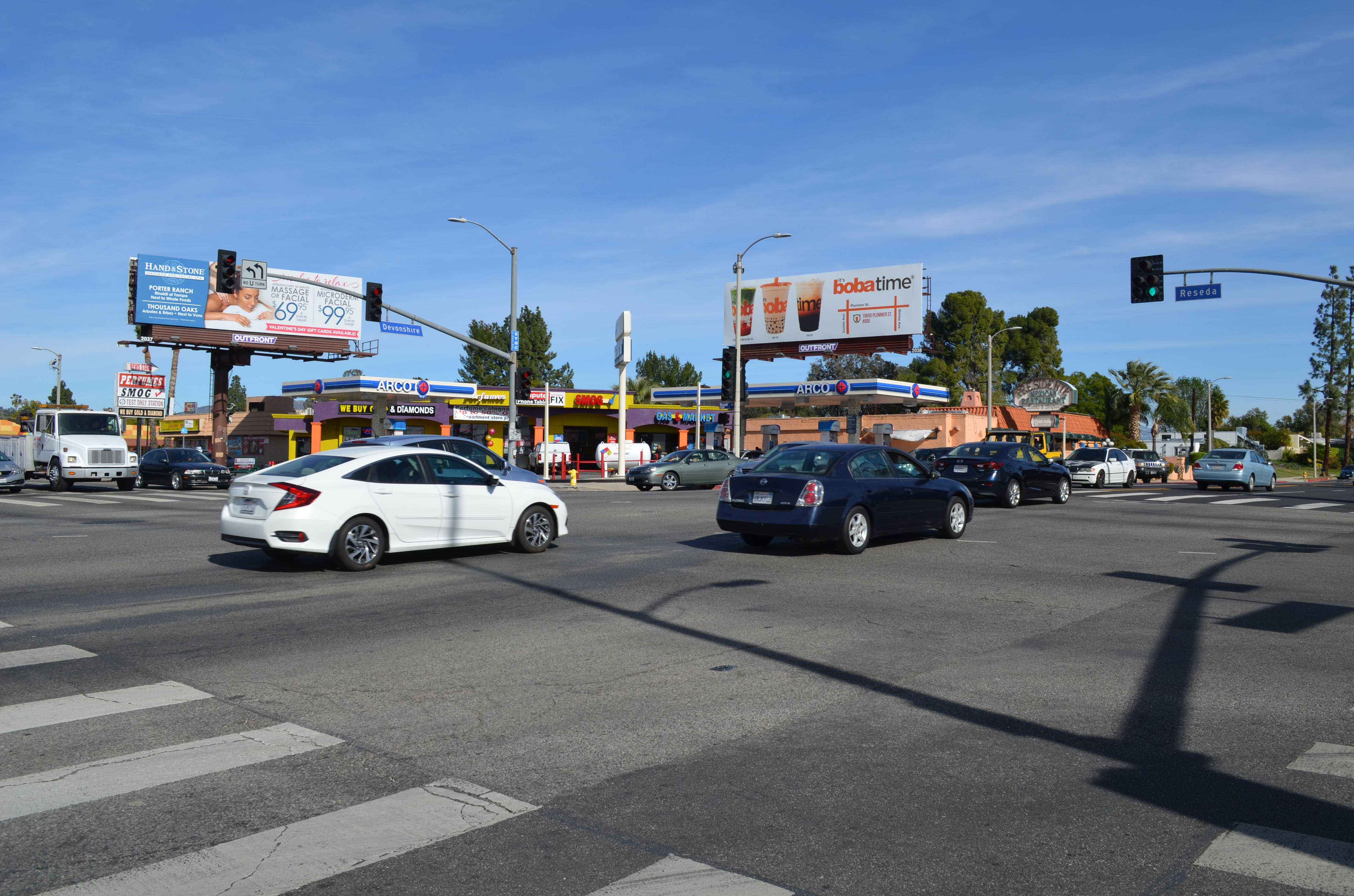 The intersection is the focal point of four commercial shopping centers and rests between CSUN and the 118 freeway. There are five major lanes, a left and right turn signal, and a posted speed limit of 40 mph.