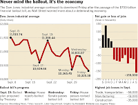 One of the reasons for the lack of improvement might have been the release of new unemployment figures. The Labor Department states that employers cut another 159,000 jobs in September. We can only hope that the bailout bill will stimulate the economy enough to change the continuing downturn. But hopes are not very high, especially because the unemployment rate is traditionally higher in winter months. We will have to wait and watch if the bailout plan can give a boost to the ailing economy. Stay tuned…