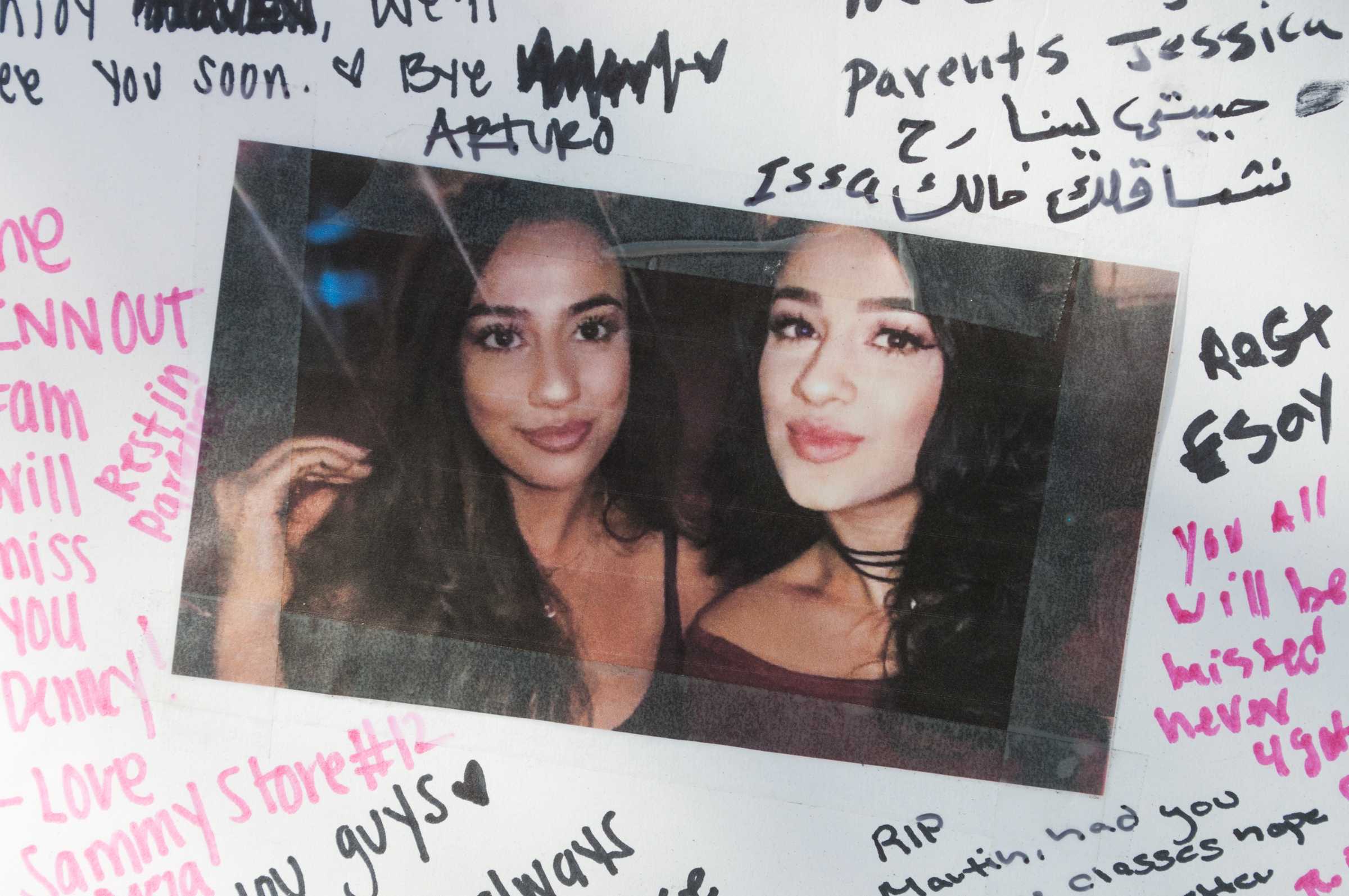 photo of two girls smiling surrounded by written messages