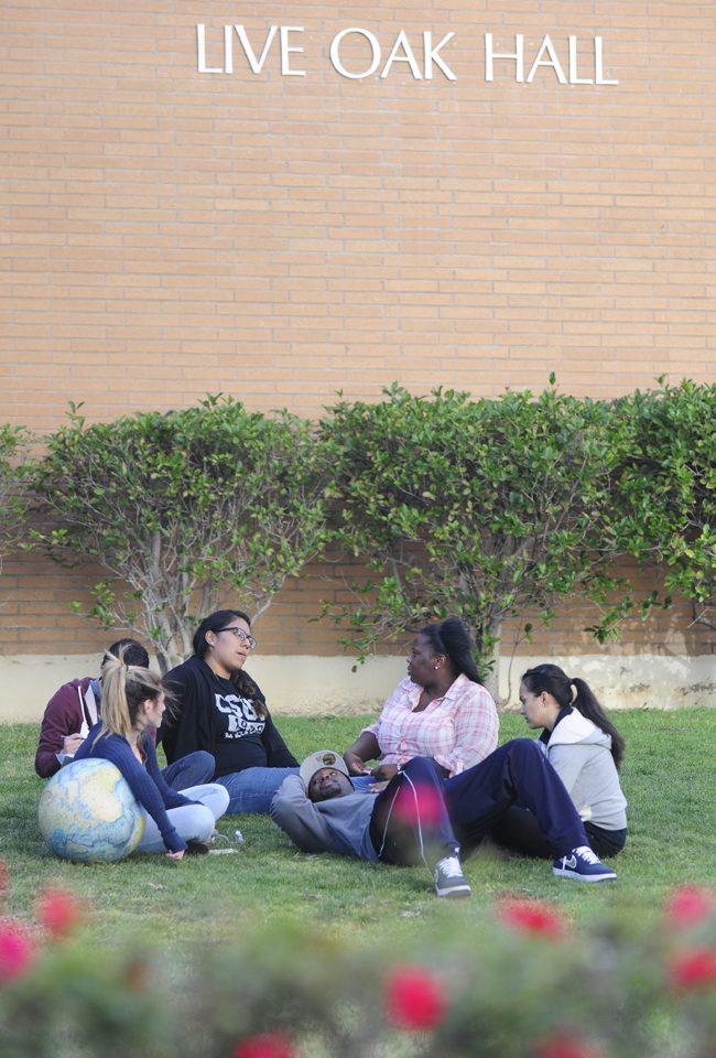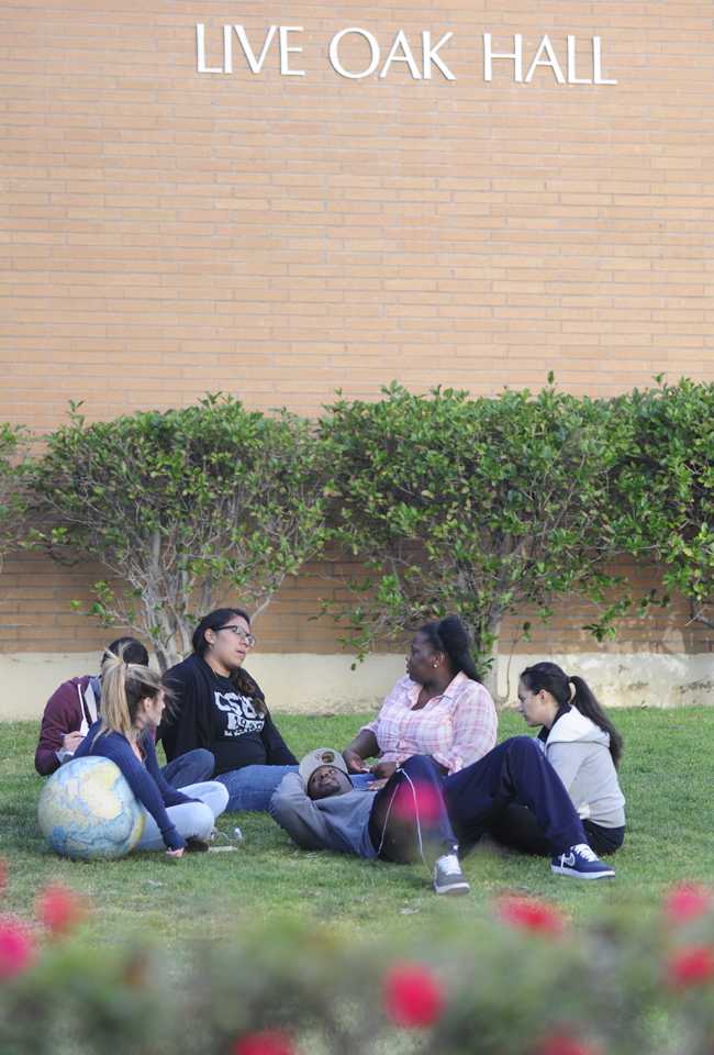 Students from the Geography 406 class for Liberal Studies practicing teaching before the final exam week in the front lawn of the Live Oak Hall on Monday, May 5, 2014 in Northridge, Calif. (Photo Credit: David J. Hawkins/Photo Editor)