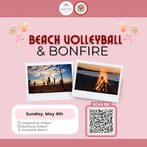 Take a break before finals and join us for beach volleyball @ 3 pm and a cozy bonfire @ 6 pm. RSVP here!