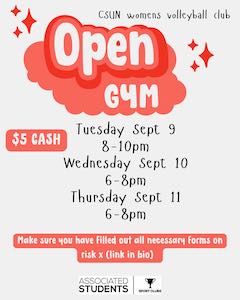 Hello friends!! We are excited to host an open gym to get in some reps before tryouts or even just have fun and play some volleyball!!!