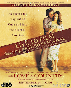 SEPTEMBER 24th! In celebration of Hispanic Heritage Month, be our guest for an unforgettable evening as the @csunjazz A Band and Strings, under the direction of @angelvelezmusic, perform a live-to-film concert of #HBO’s For Love or Country: The Story of Arturo Sandoval, commemorating the film’s 25th anniversary.