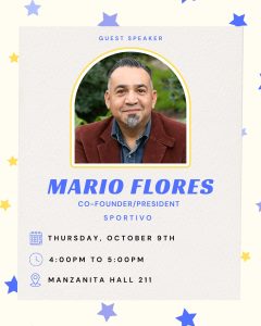 Join us on Oct. 9 and meet Mario Flores, co-founder and president of Sportivo, a sports PR agency!