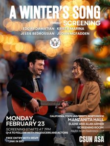 CSUN ASA presents “A Winter’s Song” movie screening. Join us Monday, February 23rd at 7 pm in the CSUN Elaine and Alan Armer Screening Room in Manzanita Hall.