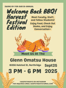 Swing by our bi-annual Welcome Back BBQ! Meet Faculty, Staff, and fellow Students! Enjoy Food, Check Out Books, and Enjoy Conversation!