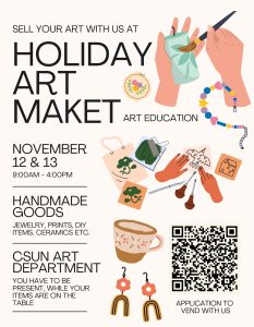 Want to showcase and sell your handmade creations? Come vend with us at the CSUN Art Department Holiday Art Market!