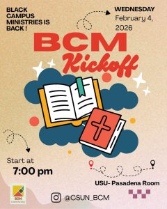 Hey BCM fam! Black Campus Ministries is back ! We will be kicking off our first Bible Study of the semester on February 4th in the Pasadena Room located in the USU East Conference Center! (next to the gym) Join us as we explore our identity in Christ and study the word of God !
