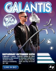 Let’s runaway to BIG SHOW FALL 2025 W/ GALANTIS! Tickets start at $5 and can be purchased online HERE or at the AS ticket office. Looking forward to seeing you Saturday, Oct 11th on the Library Lawn. Doors open at 2pm Matadors!