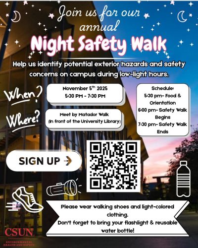Matadors, great news… the Campus Night Safety Walk is back for another year!