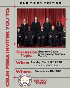 Join us for our third discussion meeting of the semester, where we will be discussing the Supreme Court’s overturning of Trump’s tariffs!