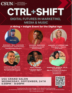 You are warmly invited to CTRL + SHIFT: Digital Futures in Marketing, Media & Music, an inspiring evening of insight and connection at California State University, Northridge.