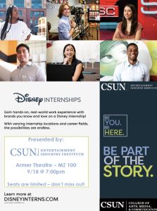 Want to intern at Disney? Don’t let this opportunity slip away. To learn more, visit the Armer Theatre (Manzanita Hall, room 100) on Thursday, September 18, at 7:00 p.m. Arrive early as seats are limited.