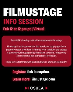 The CSUEA is hosting a virtual info session with Filmustage through Handshake.