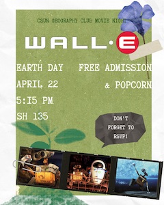 The Geography Club invites you to our movie night on 4/22 @ 5:15 PM to celebrate Earth Day! We are showing Wall-E!