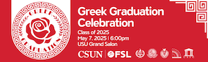 General attendees, the Matador Involvement Center welcomes friends and family of our graduating seniors that are participating in our Greek Graduation Celebration! Join us at the USU Grand Salon as we honor and celebrate the fraternity & sorority leaders of tomorrow. We cannot wait for you to help us send off our fellow Matadors beginning at 6:00pm until 7:30pm. Light refreshments will be provided in the venue for our guests. Congratulations to our graduating seniors – remember that once a Matador, always a Matador! We proudly present, the Eta Class of 2025!