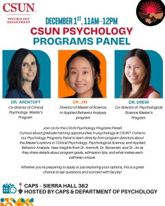 Join us for the CSUN Psychology Programs Panel — Friday, Dec 1st, 11AM–12PM in Sierra Hall 362!