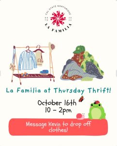 La familia will have their very own stand at the Thursday thrift, October 16th from 10-2 pm at the Bayramian lawn! GB members are still welcome to donate clothing throughout the week to Kevin, our community service chair, or any steering member directly.