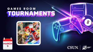 Game on, Matadors! The Student Recreation Center is hosting a series of tournaments in the Games Room for you to show off your skills and win amazing prizes. Whether you dominate Smash Bros, are the master of hat tricks on FIFA or keep it cool with a billiards cue, you’re guaranteed to have fun as you go head-to-head...